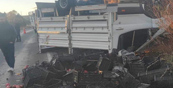 Kamyonun devrilmesi sonucu yola saçılan meyveler nedeniyle karayolunda kısa süreli bir trafik aksaması yaşandı.