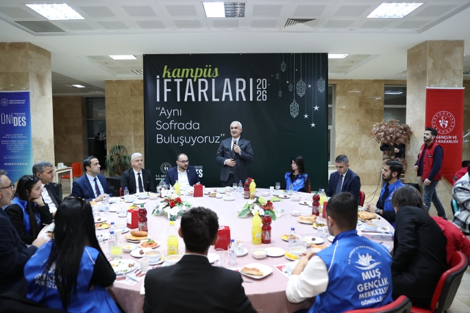 Gençlik ve Spor Bakanlığı’na bağlı Muş Gençlik ve Spor İl Müdürlüğü tarafından organize edilen programda, üniversite öğrencileriyle aynı sofrada buluşan Vali Çakır, öğrencilerle sohbet ederek onların Ramazan ayını tebrik etti.