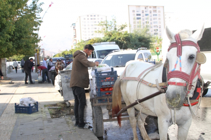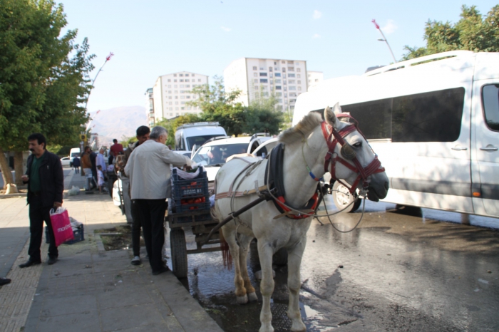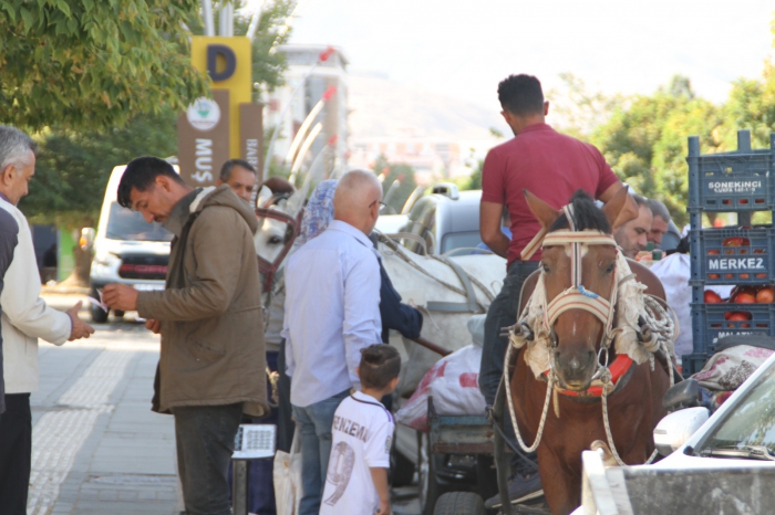 ALPARSLAN DİYARI- Muş’un her caddesinde boy gösteren atlı seyyar satıcılar hem köylerinde yetiştirdikleri organik sebze ve meyveleri satıyor hem de vatandaşlara atlarla fotoğraf çektirme şansı sunuyor. Her yıl özellikle sonbahar aylarında ortaya çıkan paytonlu seyyar satıcılar bazı vatandaşları için görsel şölen oluştururken, bazı vatandaşlar da çevre kirliliğinden dolayı şikayetçi oluyor.