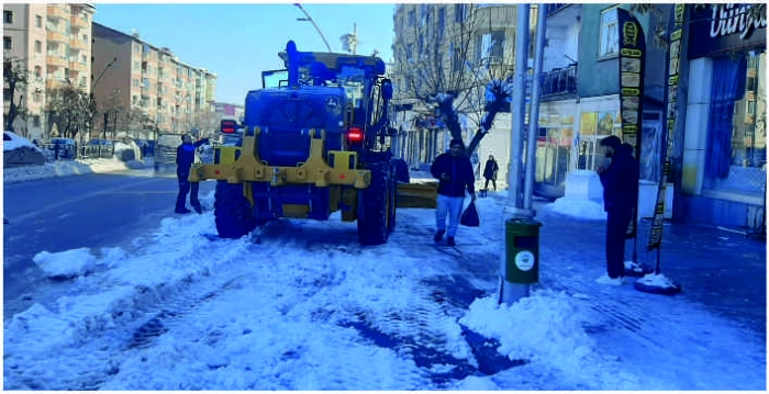 ALPARSLAN DİYARI-Şehir merkezinde ulaşımın aksamaması ve vatandaşların mağduriyet yaşamaması için ekipler, ana arterler ve kaldırımlarda kar temizleme ve tuzlama çalışmaları yaptı.