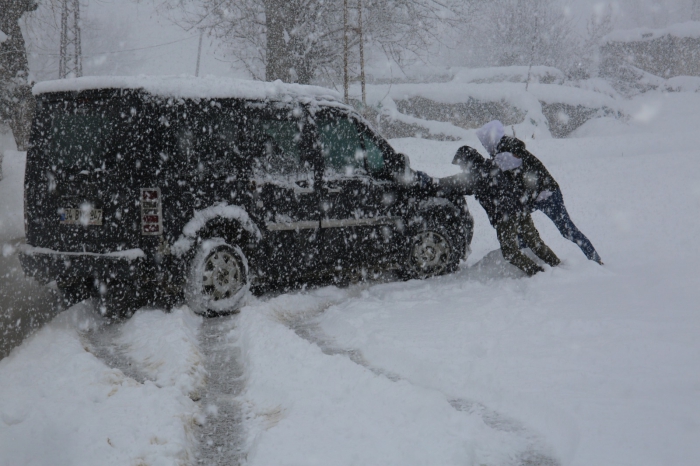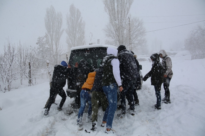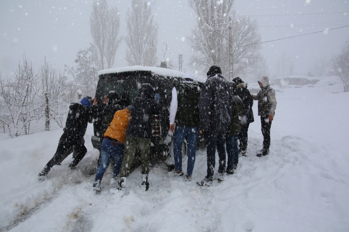 Hasköy ilçesinde Dağdibi köyüne giden ve yolda mahsur kalan araçların imdadına karın keyfini çıkaran gençler yetişti. Karın keyfini çıkaran gençler, yolda kalan araçları iterek sürücülere yardım etti.