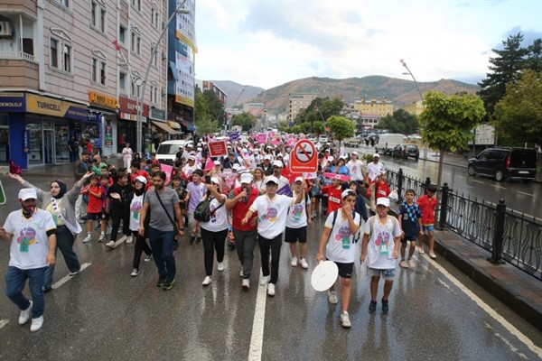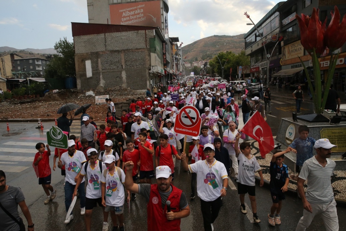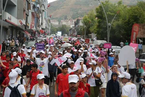 Muş'ta Genç Birikim Derneği tarafından organize edilen "11. Uluslararası Onkoloji Günleri" etkinliği kapsamında kanser konusunda farkındalık oluşturulması amacıyla yürüyüş yapıldı.