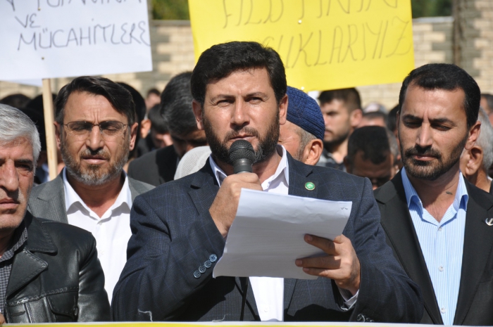 ALPARSLAN DİYARI- Hür Dava Partisi (HÜDA-PAR) Muş İl Başkanlığı organizasyonuyla cuma namazı çıkışında, Belediye Meydanı’nda Filistin'e destek açıklaması yapıldı.