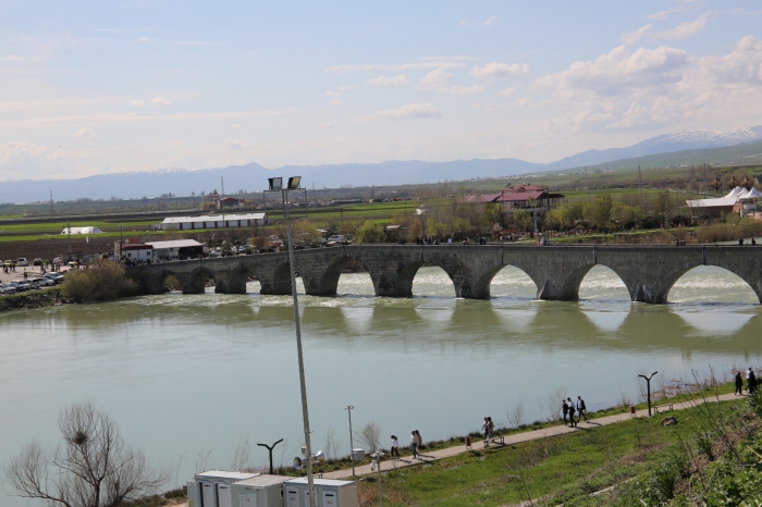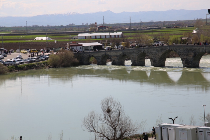 ALPARSLAN DİYARI- Murat Nehri üzerinde 13'üncü yüzyılda inşa edilen 188 metre uzunluğunda ve 5 metre genişliğindeki 12 gözlü köprü, kenti ziyaret edenlerin gezdiği tarihi mekanların başında geliyor.