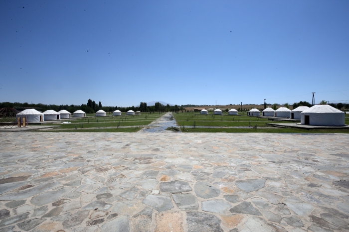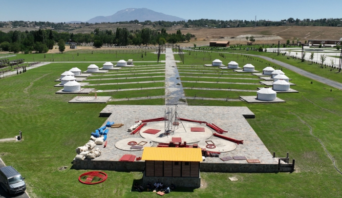 Malazgirt'te binlerce kişinin katılımıyla 24-26 Ağustos'ta gerçekleştirilecek kutlamaların yapılacağı alanda 16 oba çadırı kuran ekipler, büyük bir han otağında çalışmalarını sürdürüyor.
