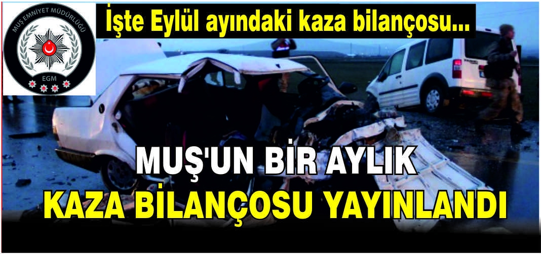 ALPARSLAN DİYARI: Emniyet Genel Müdürlüğü Trafik Başkanlığı istatistiklerine göre Muş’ta Eylül ayında 114 trafik kazası meydana geldi. İstatistiklere göre, kentte meydana gelen 114 kazada 1 kişi yaşamını yitirirken, 112 kişi de yaralandı. Kazaların 60’ı ölümlü ve yaralamalı olurken, 54’ünün de ise maddi hasarlı olduğu açıklandı. Öte yandan yılın ilk 9 ayında polis bölgesinde toplam 761 kazanın meydana geldiği açıklandı. 3 kişinin hayatını kaybettiği trafik kazalarında toplam 671 kişi yaralanırken, istatistiklere göre kazaların 361’inin ölümlü ve yaralamalı, 400’ünün de maddi hasarlı olduğu kaydedildi.