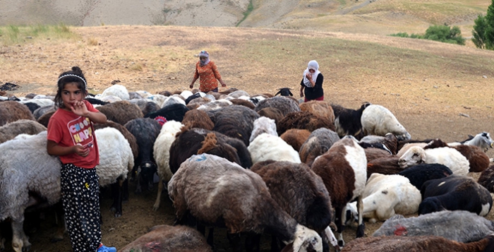 Zorlu yaşam koşullarına rağmen hayvanlarının bakımını ihmal etmeyen kadınlar, diğer günlük faaliyetlerinin yanı sıra koyunlarının kırkma işleriyle de ilgileniyor.