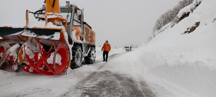 Bölgedeki kar yağışının ardından 3 günden beri karla mücadele çalışmasına devam ettiklerini belirten Karayolları 113. Şube Şefliği Yol Sorumlusu İdris Karakan, etkili olan yoğun kar yağışı ve tipi nedeniyle yolun sürekli ulaşıma kapandığını söyledi.