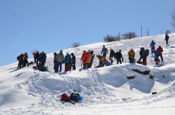 Antrenör Mehmet Haki Uğur ise uygulama için karlı bölgeye araçlarla geldiklerini belirterek, eğitimlerde dağcılara karda yürüme teknikleri, alınacak güvenlik önlemleri, hayatta kalma, kar mağarası yapma gibi konularda eğitim verdiklerini söyledi.