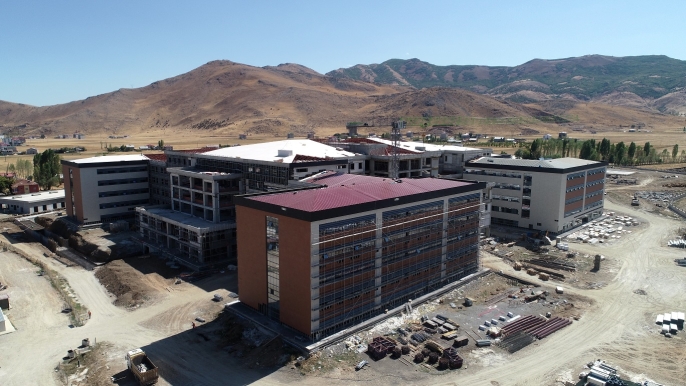 ALPARSLAN DİYARI- Sağlık Bakanlığınca Muş-Bitlis kara yolundaki 115 dönüm alanda 2022'de temeli atılan hastane inşaatında çalışmaların yüzde 75'i tamamlandı.