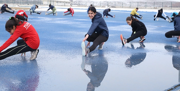 Milli atlet Berfin Barışer ise "Soğuk hava bize engel olmuyor. Hedeflerimize ulaşmak için ne kadar soğuk olursa olsun yine aynı şekilde antrenmanlarımıza devam ediyoruz. Uzun mesafe koşucusuyum. Bunun için günlük 20 kilometre koşuyorum." diye konuştu.