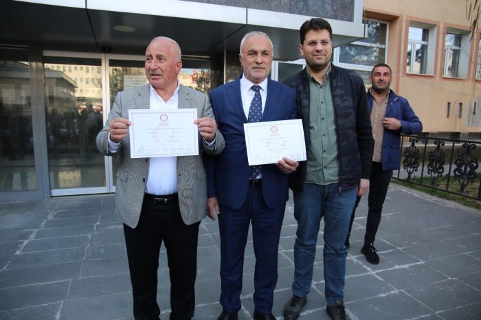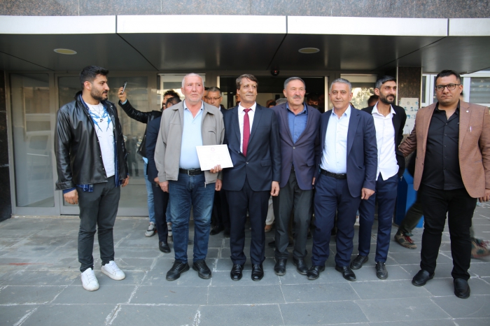 Partililerle İl Seçim Kuruluna giden Sırrı Söylemez'in mazbatası, görevliler tarafından verildi.