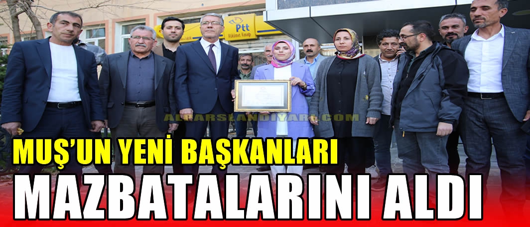 ALPARSLAN DİYARI- 31 Mart yerel ve mahalli idareler seçimleri sonrası kesinleşen sonuçlar ile birlikte il ve beldelerde yeni seçilen belediye başkanları mazbatalarını alarak görevlerine başladı. Muş’ta da merkez ve beldelerde kesinleşen sonuçlar sonrası yeni başkanlar mazbatalarını aldı.