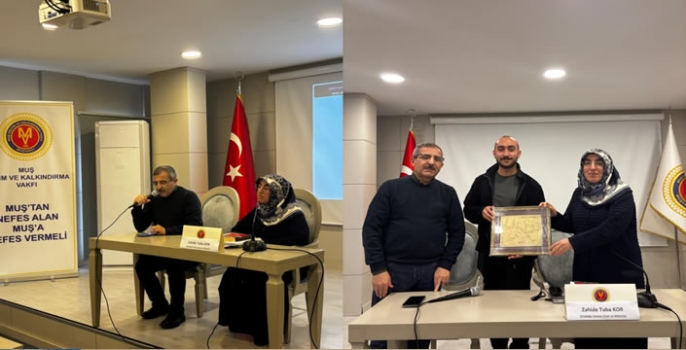 Program sonunda, Muş Eğitim ve Kalkındırma Vakfı tarafından Zahide Tuba Kor’a, 1890’lı yıllara ait Zor Mutasarrıflığı ve Fırat Havzası’nı konu alan Osmanlıca bir belge hediye edilerek günün anısına anlamlı bir takdim gerçekleştirildi.