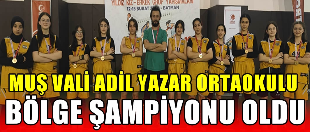 Muş İl Birincisi olarak bölge şampiyonasına katılan Vali Adil Yazar Ortaokulu Yıldız Kızlar Basketbol Takımı, Takım Antrenörü Yusuf Altıok yönetiminde Batman’da da başarılı bir sonuca imza atarak bölge şampiyonluğunu kazandı.