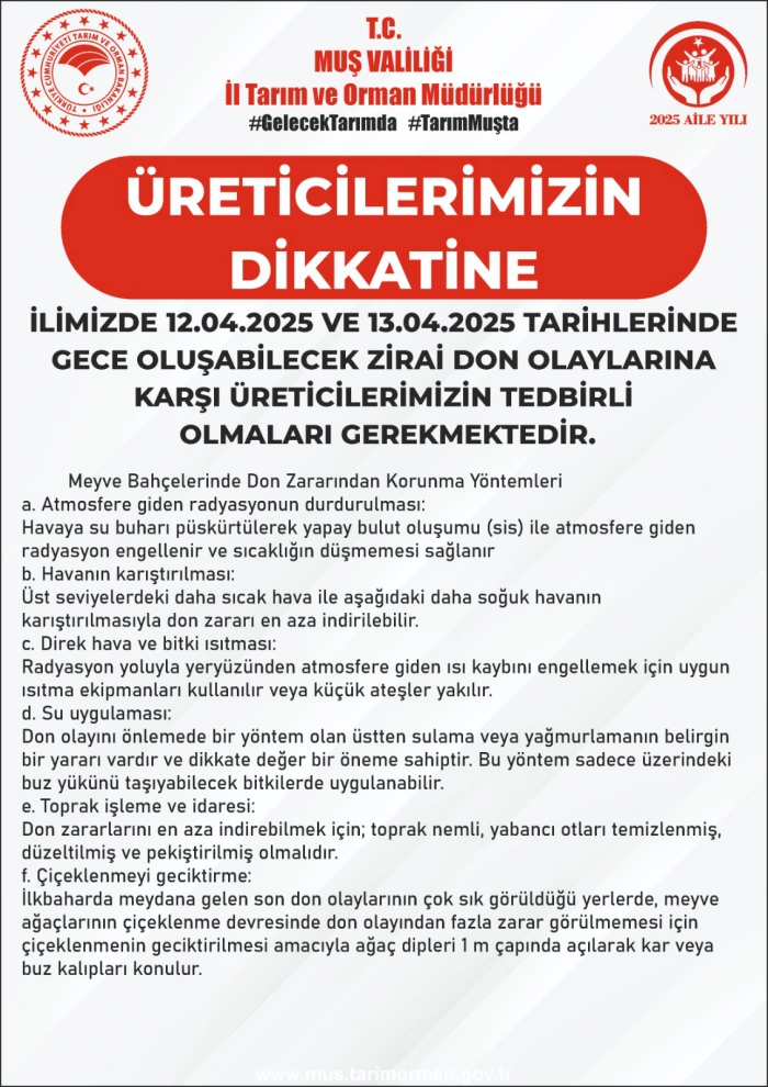 Tarım ve hayvancılığın yaygın olarak yapıldığı Muş’ta, bu tür doğal afetlere karşı üreticilerin bilinçli hareket etmeleri ve gerekli önlemleri almaları büyük önem taşıyor.