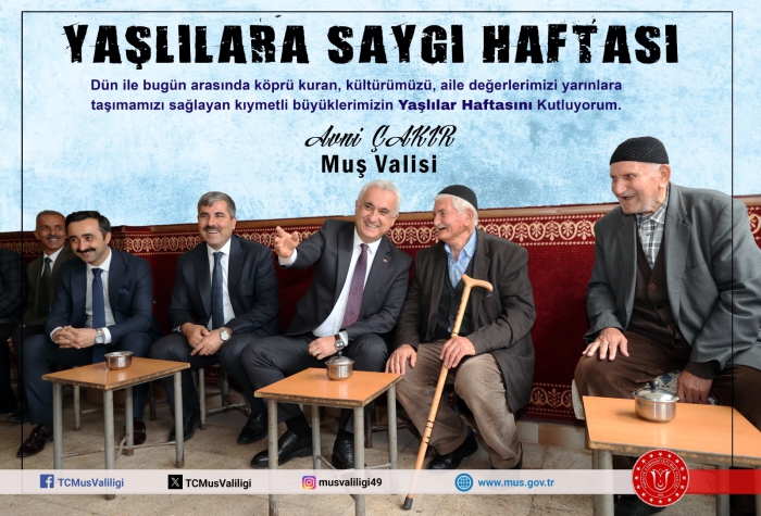 ALPARSLAN DİYARI- Muş Valisi Çakır, yayımladığı mesajında yaşamın her anında genç nesle rehberlik eden, tecrübeleri ve bilgi birikimleriyle geleceğe ışık tutan yaşlıların en değerli varlıklar olduğunu açıkladı.