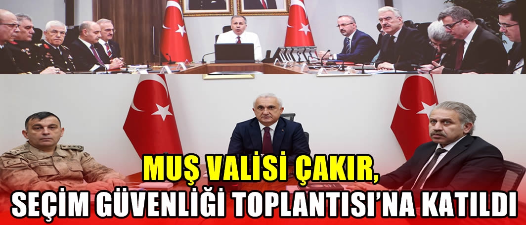 Muş Valisi Avni Çakır başkanlığında gerçekleştirilen seçim güvenliğine yönelik güvenlik toplantısına İl Jandarma Komutanı Jandarma Albay Mehmet Kasım Ermiş ve İl Emniyet Müdürü Serkan Karaman’da katılım sağladı.