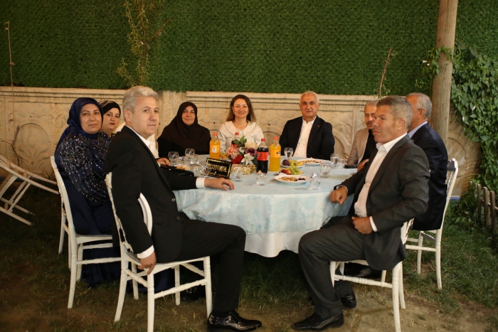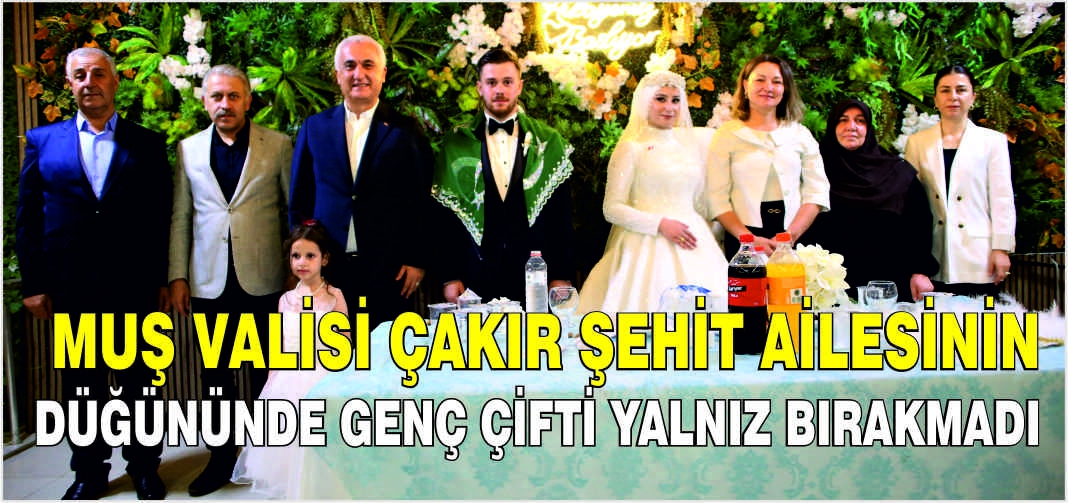 ALPARSLAN DİYARI- Vali Çakır, düğünde Şehit Murat Yılmaz'ın babası Nazım Yılmaz ve aile fertleriyle bir araya gelerek sohbet etti. Genç çifte bir ömür boyu mutluluklar dileyen Vali Çakır, onları tebrik etti.