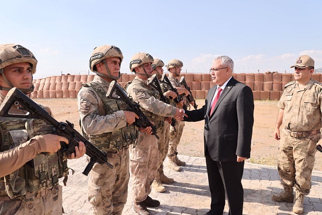 Güvenlik güçlerine görevlerinde başarı dileyen Gündüzöz, üs bölgesi hakkında İl Jandarma Komutanı Albay Mehmet Kasım Ermiş'ten bilgi aldı.