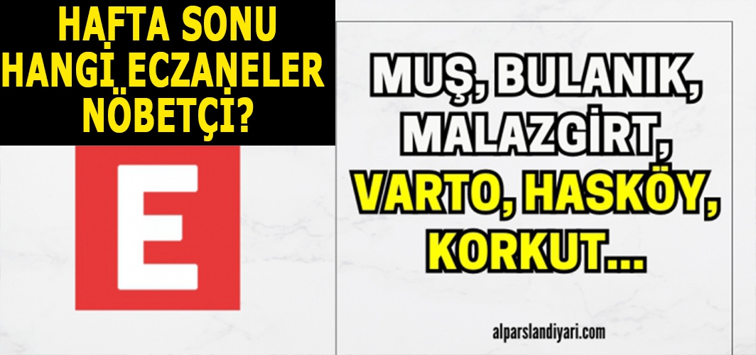 ALPARSLAN DİYARI- Acil ihtiyaçlarınız için aşağıdaki nöbetçi eczaneleri ziyaret edebilirsiniz: