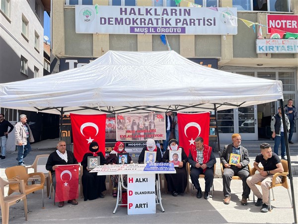 Muş'ta çocuklarının terör örgütü PKK tarafından dağa götürülmesinden HDP'yi sorumlu tutan aileler, partinin il başkanlığı önündeki eylemlerini sürdürdü.