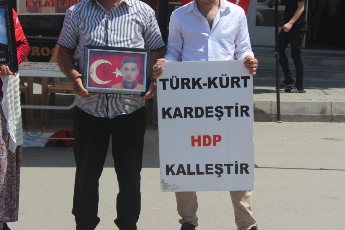 HDP İl Başkanlığı binası önünde toplanan aileler, "Halk düşmanı parti", "Evlatlarımızı vereceksiniz", "Ha HDP ha PKK", "Türk-Kürt kardeştir, HDP kalleştir", "Halkı dolandıran parti", "Anneler direniyor", "Artık yeter yakamızdan düşün" ve "Yeter artık evlatlarımızı bırakın" yazılı pankartlar açtı.