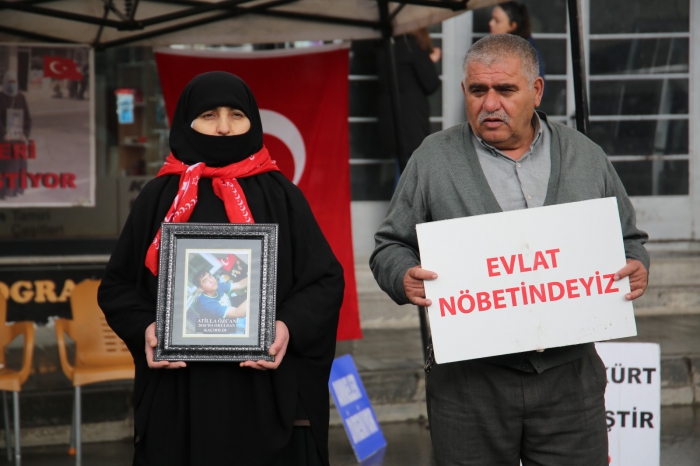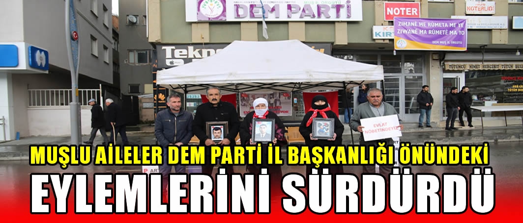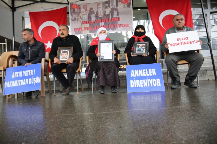 ALPARSLAN DİYARI- Çocuklarına kavuşma ümidiyle her hafta çarşamba günü DEM Parti il binası önünde bir araya gelen aileler, "Evlat nöbetindeyiz", "Anneler direniyor" ve "Artık yeter yakamızdan düşün" yazılı pankartlar açtı.