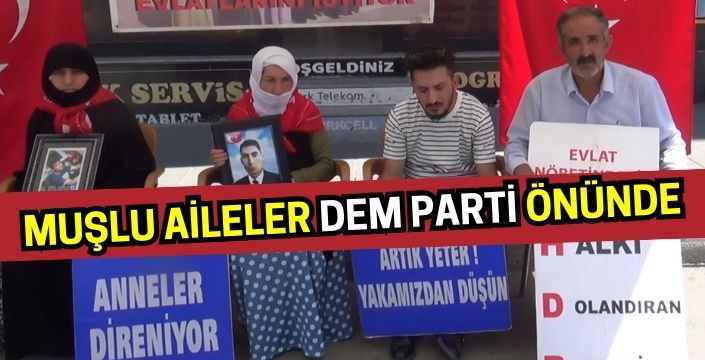 ALPARSLAN DİYARI- Muş'ta çocuklarının terör örgütü PKK tarafından dağa götürülmesinden DEM Parti'yi sorumlu tutan aileler, partinin il başkanlığı binası önünde oturma eylemi yaptı.