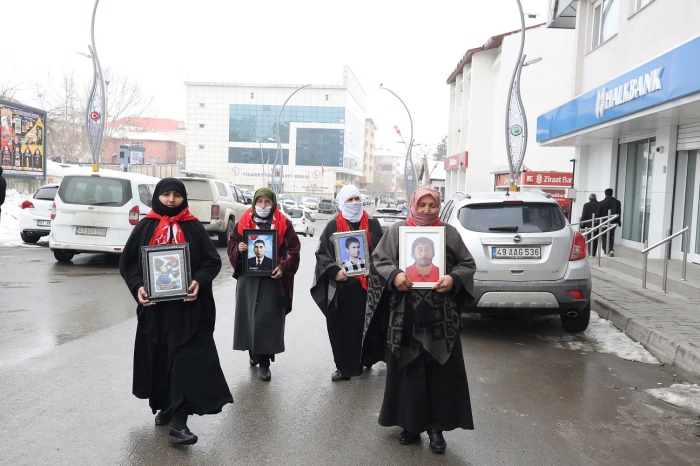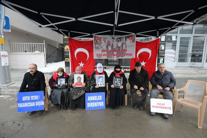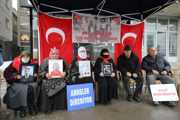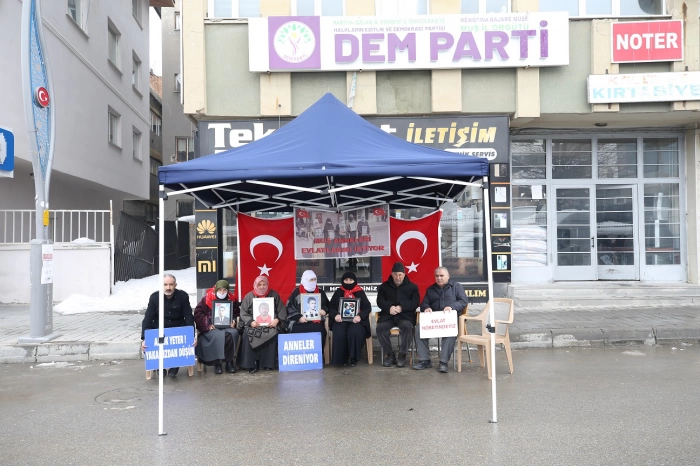 ALPARSLAN DİYARI- Çocuklarına kavuşma ümidiyle her hafta çarşamba günü DEM Parti İl Başkanlığı binası önünde yaptıkları eylemlerini sürdüren aileler, "Anneler direniyor", "Evlat nöbetindeyiz" ve "Artık yeter yakamızdan düşün" yazılı pankartlar açtı.