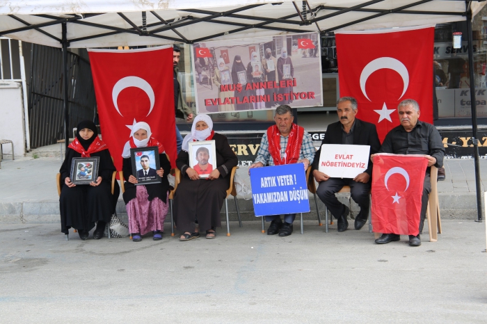 "Evlat nöbetindeyiz", "Anneler direniyor" ve "Artık yeter yakamızdan düşün" yazılı pankartlar açan anne ve babalar, fotoğraflarını taşıdıkları çocuklarına teslim olmaları için çağrıda bulundu.