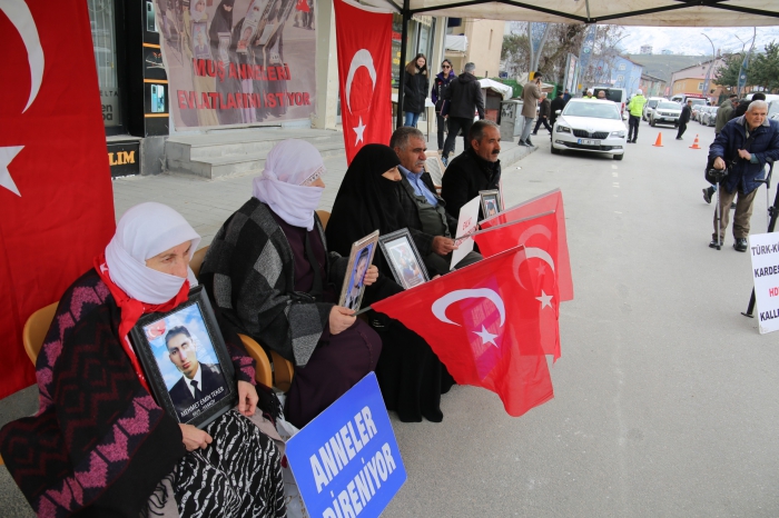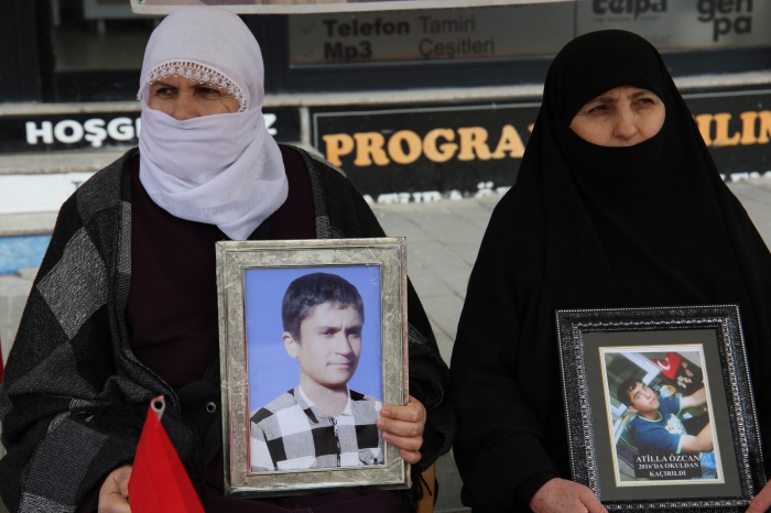 Bir aydır hastanede tedavi gördüğünü ve oğlu için eyleme katıldığını belirten anne Naciye Sönmez Yıldız, "Allah hakkımızı yerde bırakmasın. Biz hakkımızı istiyoruz. Çocuklarımızı bıraksınlar, perişan olduk. Oğlum korkusundan gelemiyor. Beynini yıkadılar, ne yapacağımızı bilmiyor. Benim çocuğum sahipsiz değil. Benim oğlum küçüktü kandırdılar. Kim çocuğumu kandırdıysa rabbim onun işini rast getirmesin. Çocuğum okul okuyordu, PKK ve HDP kandırıp götürdü." dedi.