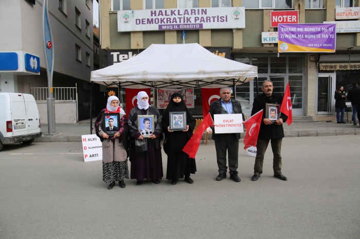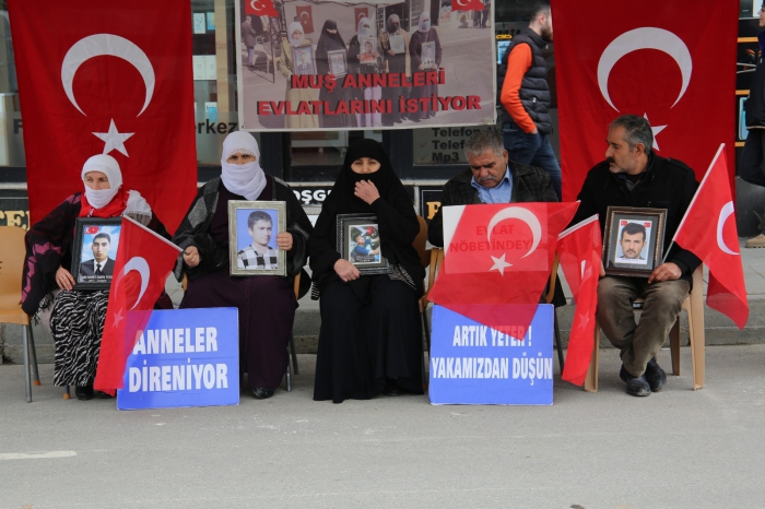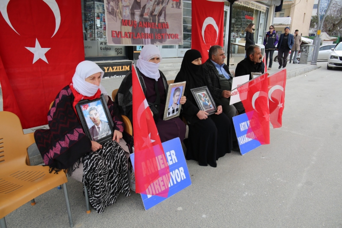 ALPARSLAN DİYARI- Çocuklarına kavuşma ümidiyle Diyarbakır annelerinin başlattığı eyleme destek veren Muşlu aileler, her hafta çarşamba günü yaptıkları eyleme devam etti. Yazılı pankartlar açan anne ve babalar, fotoğraflarını taşıdıkları çocuklarına "teslim ol" çağrısında bulundu.