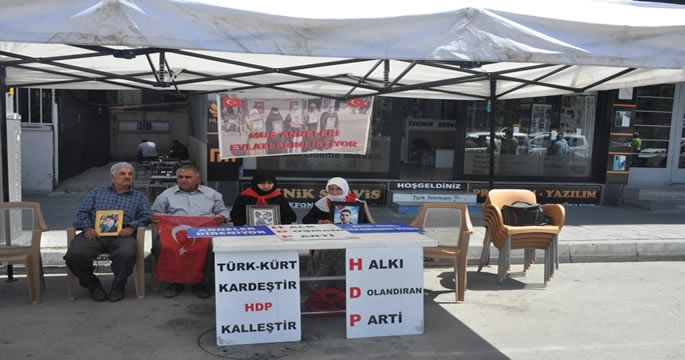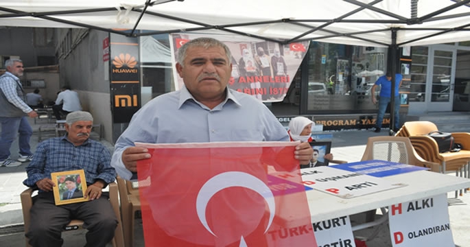 ALPARSLAN DİYARI- Kandırılarak dağa kaçırılan çocukları için HDP Muş İl Başkanlığı binası önünde oturma eylemi yapan anneler evlat nöbetini sürdürüyor. Oğlunu almayana kadar eylemini sürdüreceğini ifade eden baba Şemsettin Özcan, çocuğu kandırılarak dağa çıkarılan ailelerden destek isteyerek, “4 senedir HDP’nin önündeyim. Ben çocuğumu HDP’den istiyorum. HDP çocuğumu vermeyene kadar burayı terk etmiyorum. Türkiye’de tek bayrak vardır, iki bayrak yoktur. HDP bizden ne istiyor. Çocuklarımızı götürüp PKK’ya veriyor, PKK da götürüp Amerika’ya veriyor” dedi.