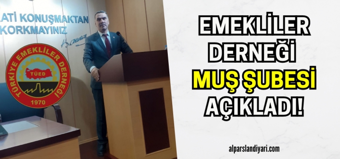 Türkiye Emekliler -Derneği Muş Şube Başkanı Murat Arık, Türkiye Emekliler Derneği (TÜED) Genel Başkanı Kazım Ergün, Cumhurbaşkanı Recep Tayyip Erdoğan'a, en düşük emekli aylığının asgari ücret seviyesine yükseltilmesi ve aylıklara seyyanen 4 bin lira iyileştirme yapılması talebiyle mektup gönderdiğini açıkladı.