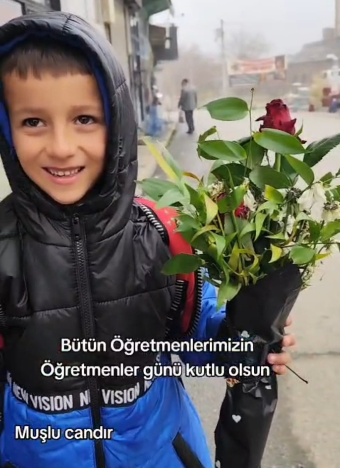 ALPARSLAN DİYARI- Soğuk havaya rağmen öğretmenine çiçek götürmeye çalışan küçük bir öğrencinin görüntüleri, duygusal anlara sahne oldu.
