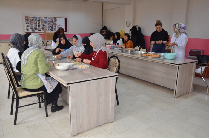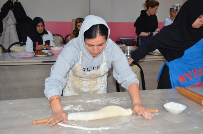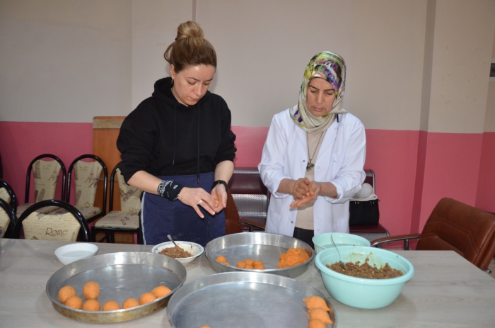 ALPARSLAN DİYARI- Muş Halk Eğitimi Merkezi'ndeki aşçılık kursuna katılan kadınlar, her gün 4 kursiyer kadına iftar için Türk mutfağına özgü yemeklerden hazırlıyor.
