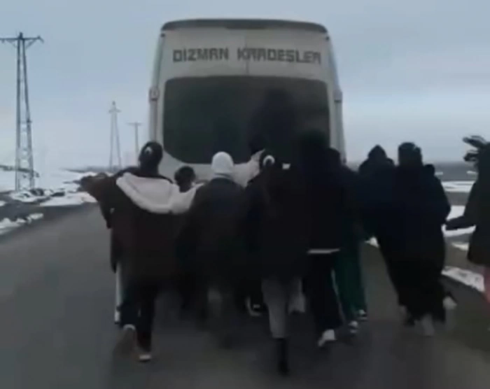 ALPARSLAN DİYARI-Servisin yolda kalmasının ardından öğrenciler hep birlikte aracı itmeye koyuldu. Bu sırada bir öğrenci, arkadaşlarının bu çabasını cep telefonu kamerasıyla kayda aldı. Kısa sürede sosyal medyada yayılan video, izleyenlerin yüzünde tebessüm oluşturdu.