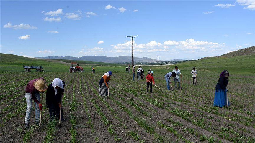 Muş'un Bulanık ilçesinde yaklaşık 24 bin dekar alanda pancar üretiminin yapıldığı tarlalarda çalışan kadın işçiler, sabah erken saatlerde başlayıp gün batımına kadar çapa yapıyor.