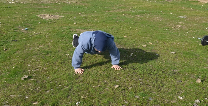 Yaşadığı köyde hem ailesine ev işlerinde yardım eden hem de bileklerini güçlendirmek için antrenmanlarını sürdüren Zeliha, hedeflerine ulaşmak için günde 600 şınav çekiyor, halter kaldırıyor, rakip bulamadığı için amcalarıyla bilek güreşi yapıyor.