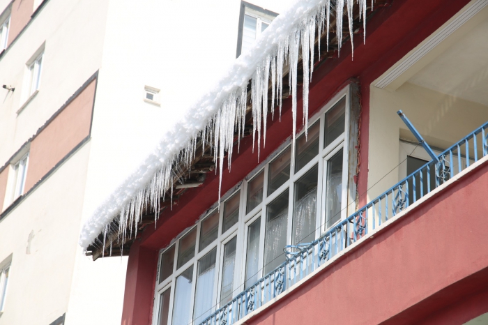 ALPARSLAN DİYARI- Muş’ta etkili olan yoğun kar yağışı sonrasında hava sıcaklığının eksi derecelere düşmesi sonucu iş yeri, apartman ve evlerin çatılarında buz sarkıtları oluştu. Oluşan buz sarkıtları yoldan gecen vatandaşlar için tehlike oluşturdu. Gün içinde hava sıcaklığının artmasıyla sarkan buzlar erimeye başladı. Bazı vatandaşlar kendi imkanlarıyla sarkan buzları temizlerken; kimi vatandaşlar ise buzların kendinden düşmesini bekledi.
