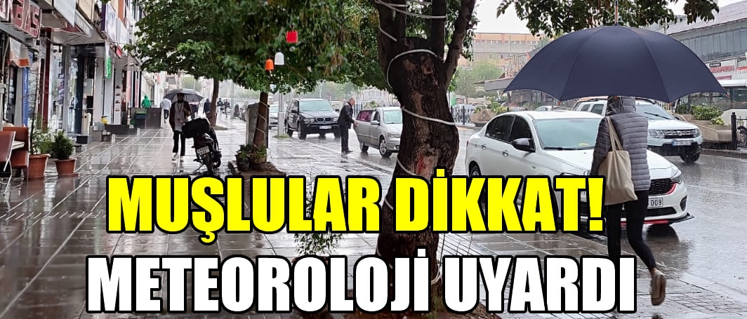 ALPARSLAN DİYARI- Meteoroloji Genel Müdürlüğü tarafından yapılan açıklamada, Muş ve ilçelerinde bugün itibariyle yerel kuvvetli gök gürültülü sağanak yağış bekleniyor.