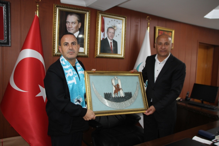 Malazgirt Belediyesi Başkanı Cengiz Altın’ın makam odasında gerçekleşen ziyarete, İl Genel Meclis Başkanı Sait Yıldırım ve 1071 Malazgirtspor Kulübü Başkanı İsmail Türeli hazır bulundu.