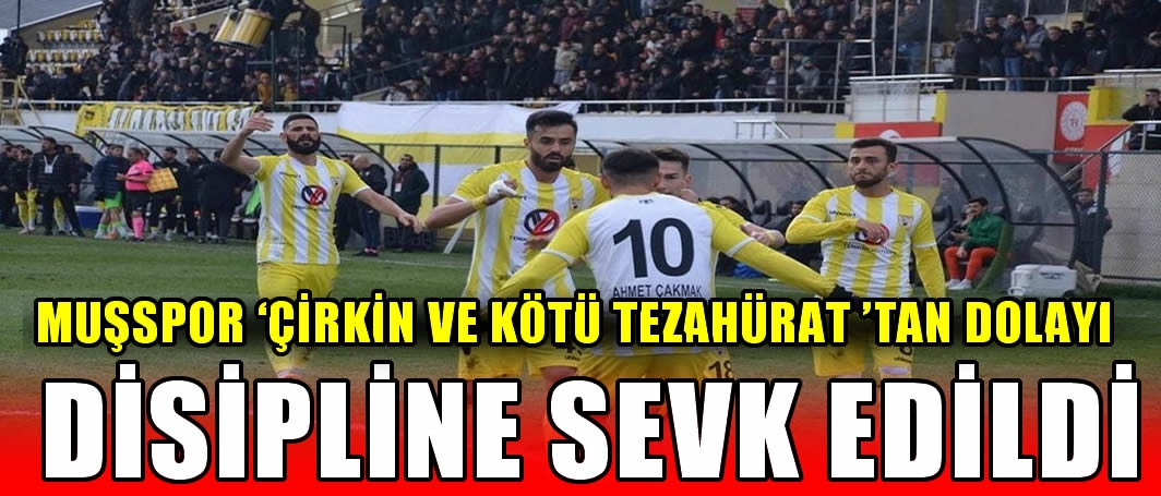 ALPARSLAN DİYARI- Türkiye Futbol Federasyonu (TFF), Muşspor’un deplasmanda oynadığı İDAŞ Çatalcaspor maçında takım halinde sportmenliğe aykırı hareketi ve taraftarlarının kötü tezahüratı nedeniyle dolayı sarı beyazlıları disiplin kuruluna sevk etti.
