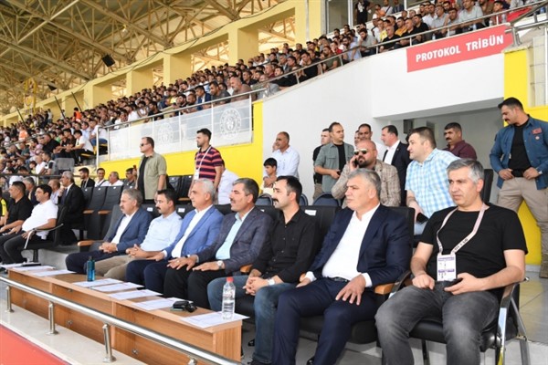 Muş Valisi Avni Çakır ve Muş Belediye Başkanı Feyat Asya, Cumhuriyet Başsavcısı Hüseyin Kantar ve Muş Emniyet Müdürü Serkan Kahraman tribündeki yerini aldı.