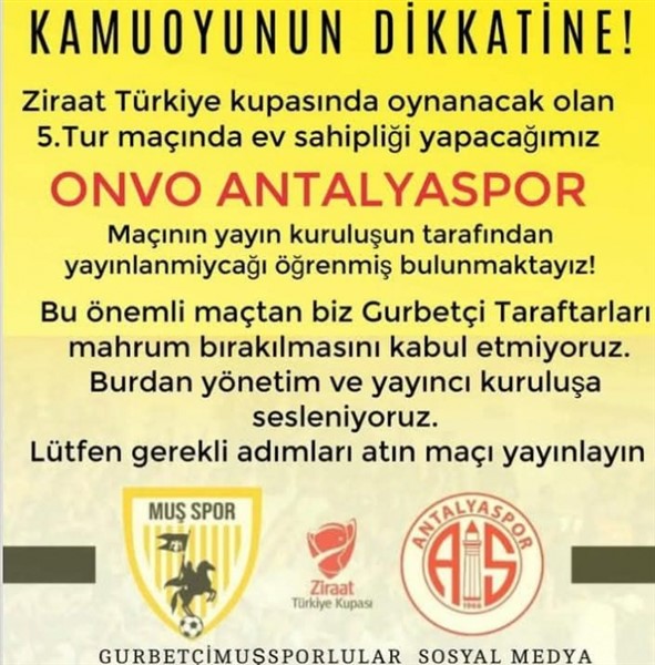 GURBETÇİ MUŞSPORLULAR; YÖNETİM VE YAYINCI KURULUŞA SESLENİYORUZ!