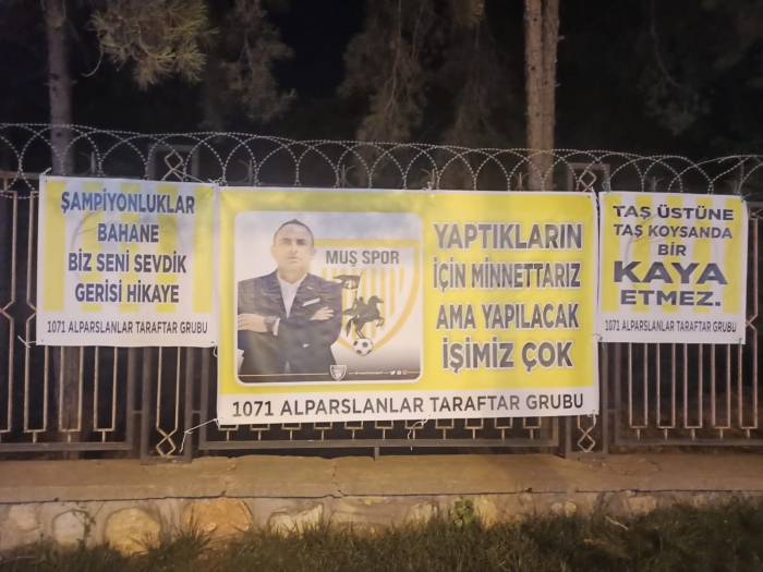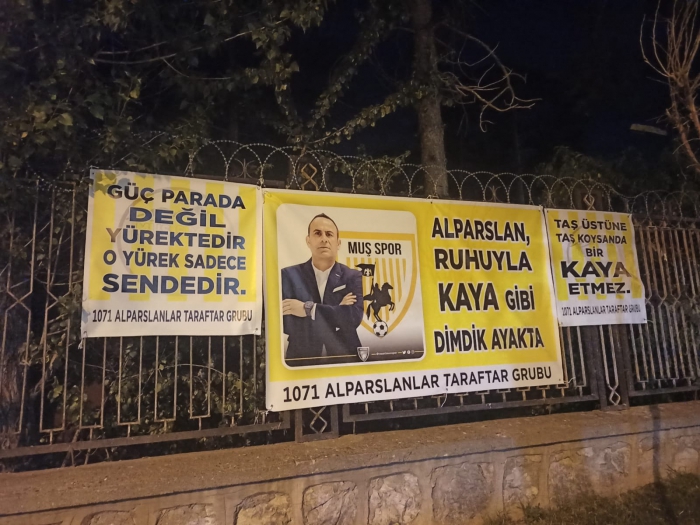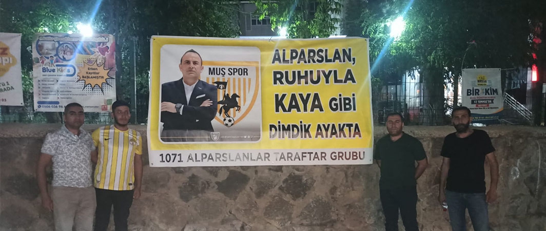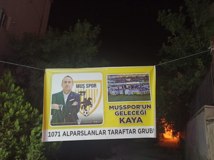 Muşspor 1071 Alparslanlar taraftar grubu, yaptırdıkları pankartları İstasyon caddesi üzerine belli alanlara asarak Nevzat Kaya’ya destek verdiler.