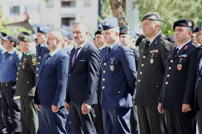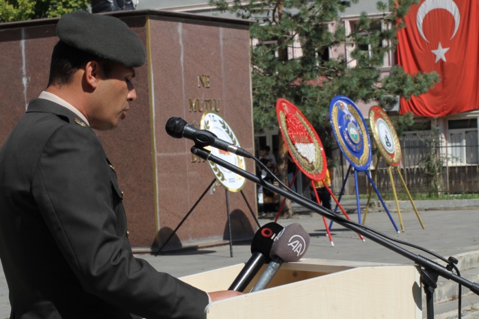 Törende günün anlam ve önemini belirten bir konuşma yapan Binbaşı Mustafa Derih savunulması uğuruna hayatını feda etmeyi göze alarak gazilik onuruna erişen kahramanların kıvanç gününü kutlamanın derin heyecan içinde olduklarını söyledi.
