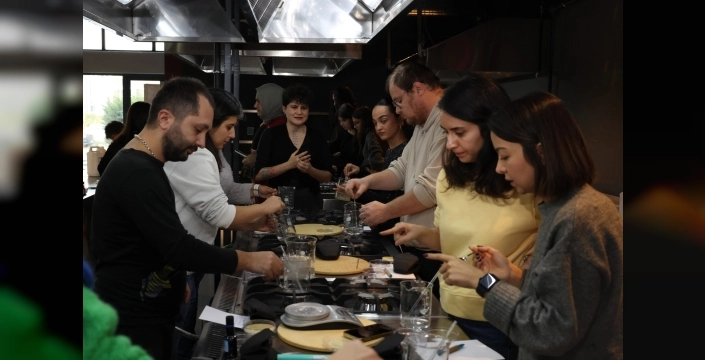 Atölyenin ikinci bölümünde ise katılımcılar, temel bir reçete doğrultusunda kendi biyoplastiklerini üretme fırsatı buldu. Bu pratik uygulamayla, plastiğin çevreyle olan ilişkisi üzerine yapılan teorik tartışmalar, somut bir deneyime dönüştürüldü. Katılımcılar, çevre dostu bir alternatif malzeme yaratma sürecini yakından deneyimleme imkanı buldu.