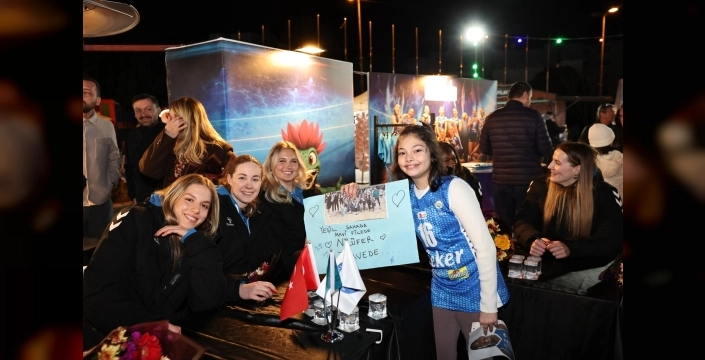 Sevgi Yolu’nda meşalelerle karşılanan sporcular, sahneye alkışlar eşliğinde çıktı. Coşkulu anlar yaşanan etkinlikte, Nilüfer Belediye Başkanı Şadi Özdemir’in eşi Nuray Özdemir ile Eker Spor Kulübü Başkanı Ece Eker, voleybolculara günün anısına çiçek takdim etti.